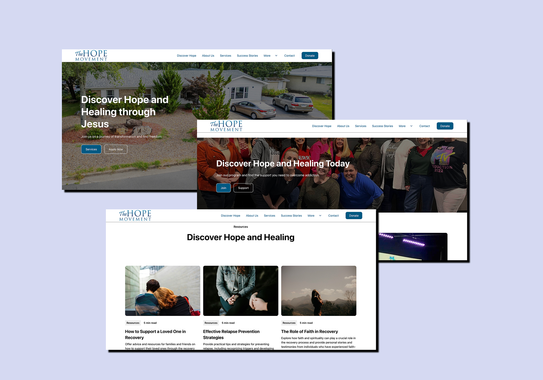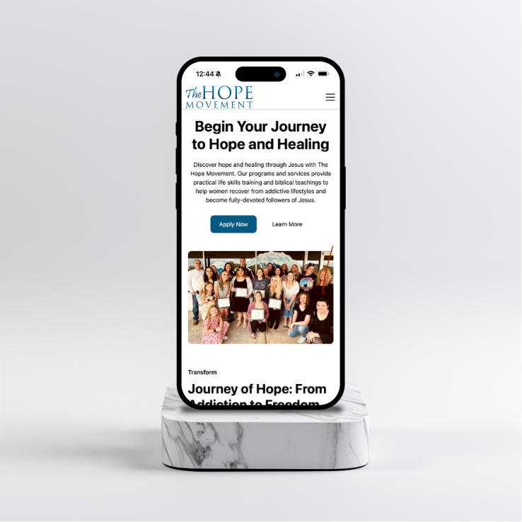 The Hope Movement is a faith-based organization dedicated to helping women recover from addiction and find purpose through biblical teaching, life skills, and mentorship. They needed a digital presence that clearly communicated their mission and inspired women to apply for the program.